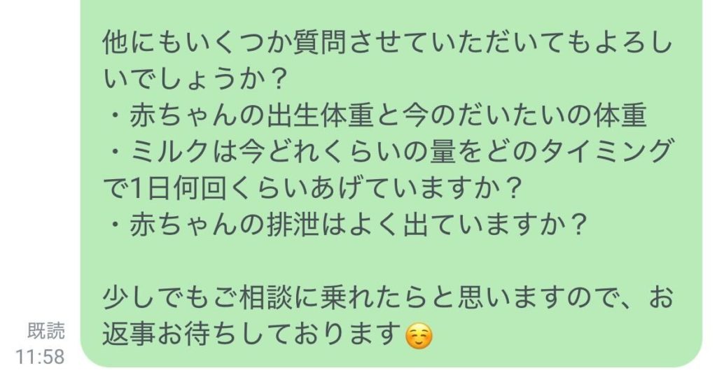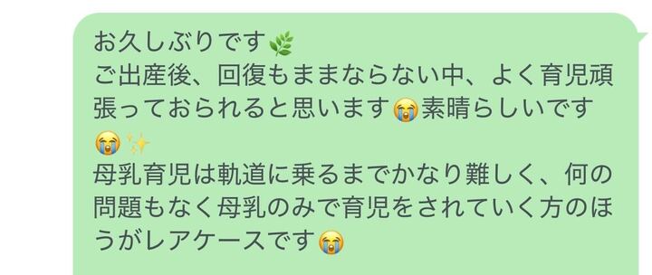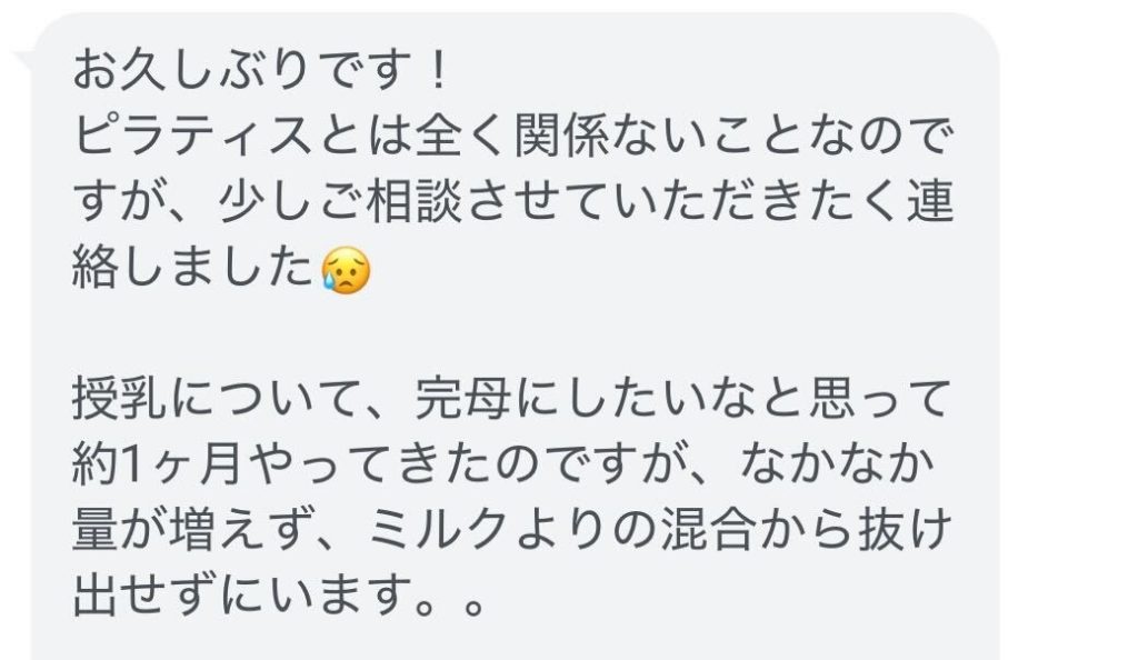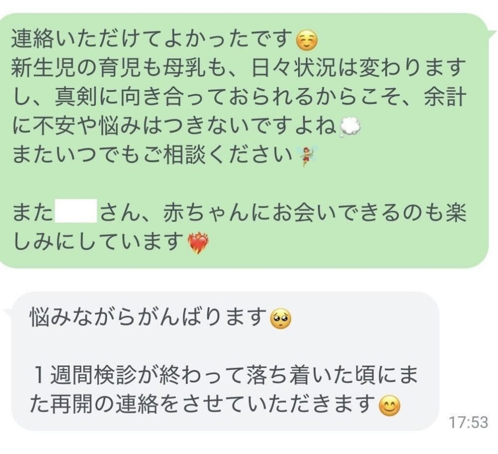 妊娠中に通ってくださっていた方が、産後に公式ラインへ連絡をくださりました。