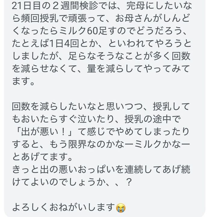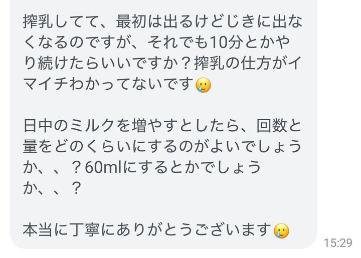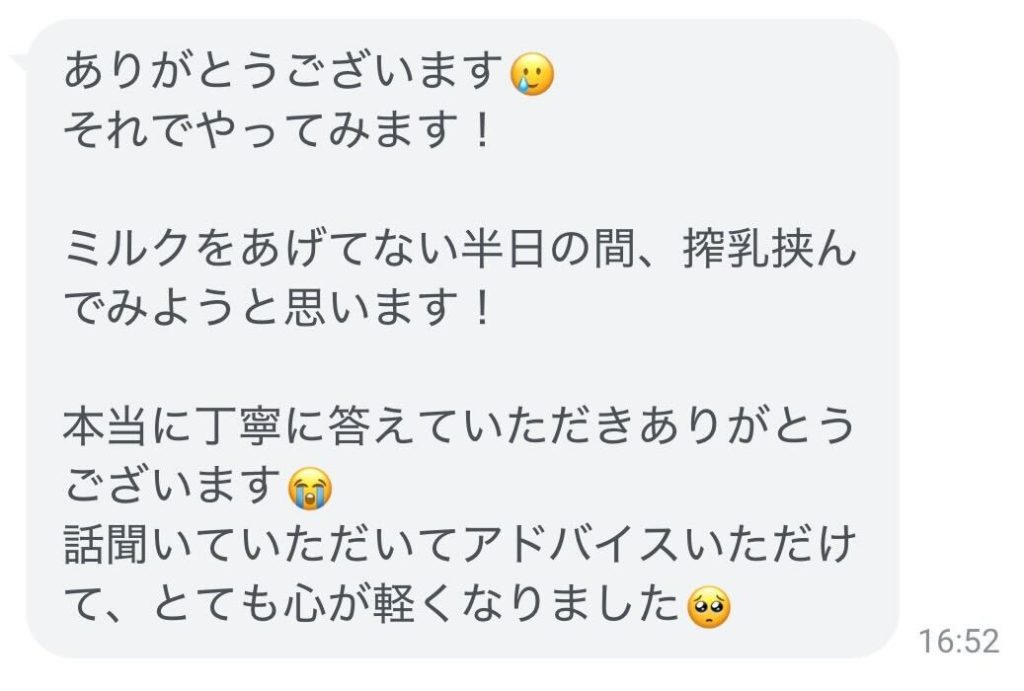 どうか、赤ちゃんのためにやっていることに自信を持って育児をしていくことができますように。そんな思いを込めて返事をしました。
