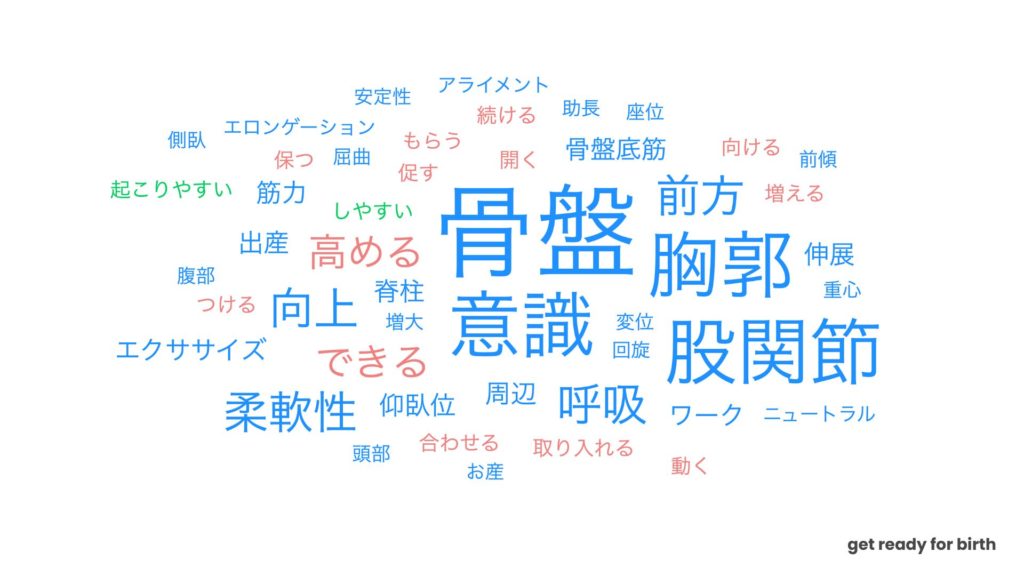 この産前産後に特化したレッスンの作成にあたっては、上記のようにまず時期ごとに獲得したい動きをスタッフ全員で抽出。