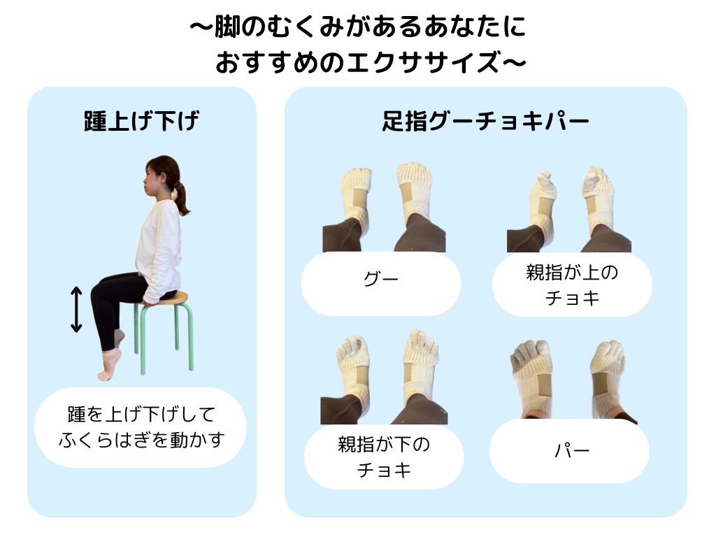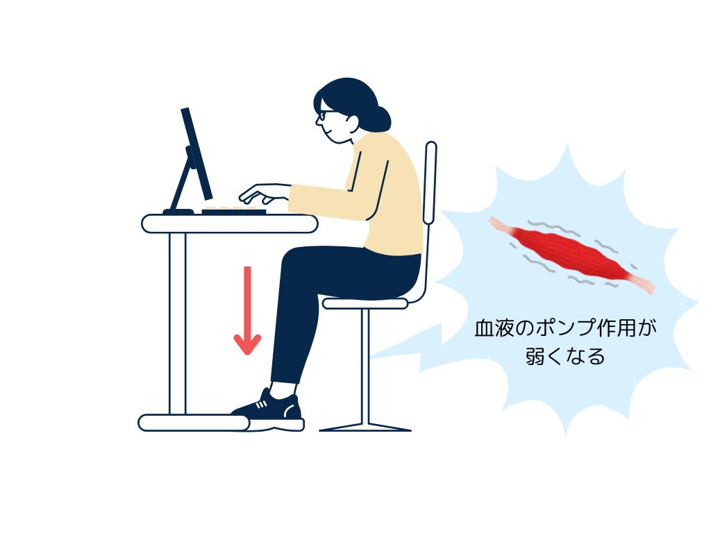 血液やリンパ液が下半身に停滞してむくみが生じます。