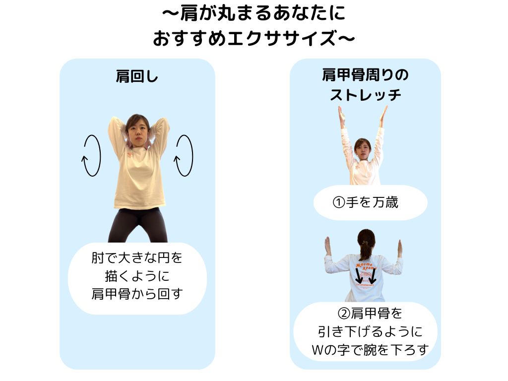 肩甲骨をしっかり動かすエクササイズがおすすめ。
